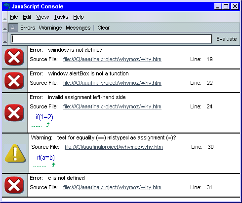 If you've only ever debugged your scripts in IE, you'll be familiar with it's poor error messages. The JavaScript console provides clearer errors, and can often show you the line where it occurred, to save searching. It is not limited to showing one error - so if your page uses a few scripts, you can see errors from all of them at once. This also provides a handy record as you fix the error. The console can also generate warnings of probable errors.
